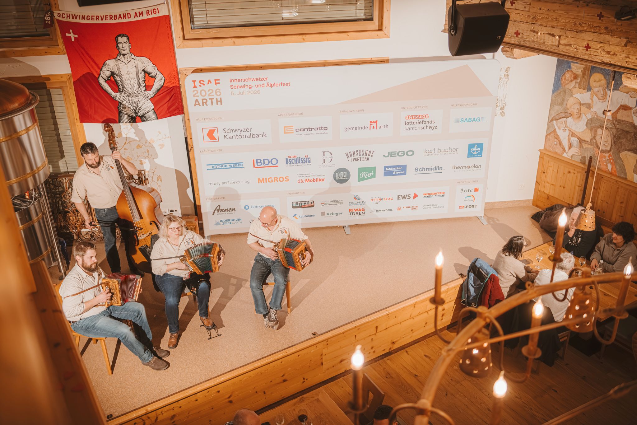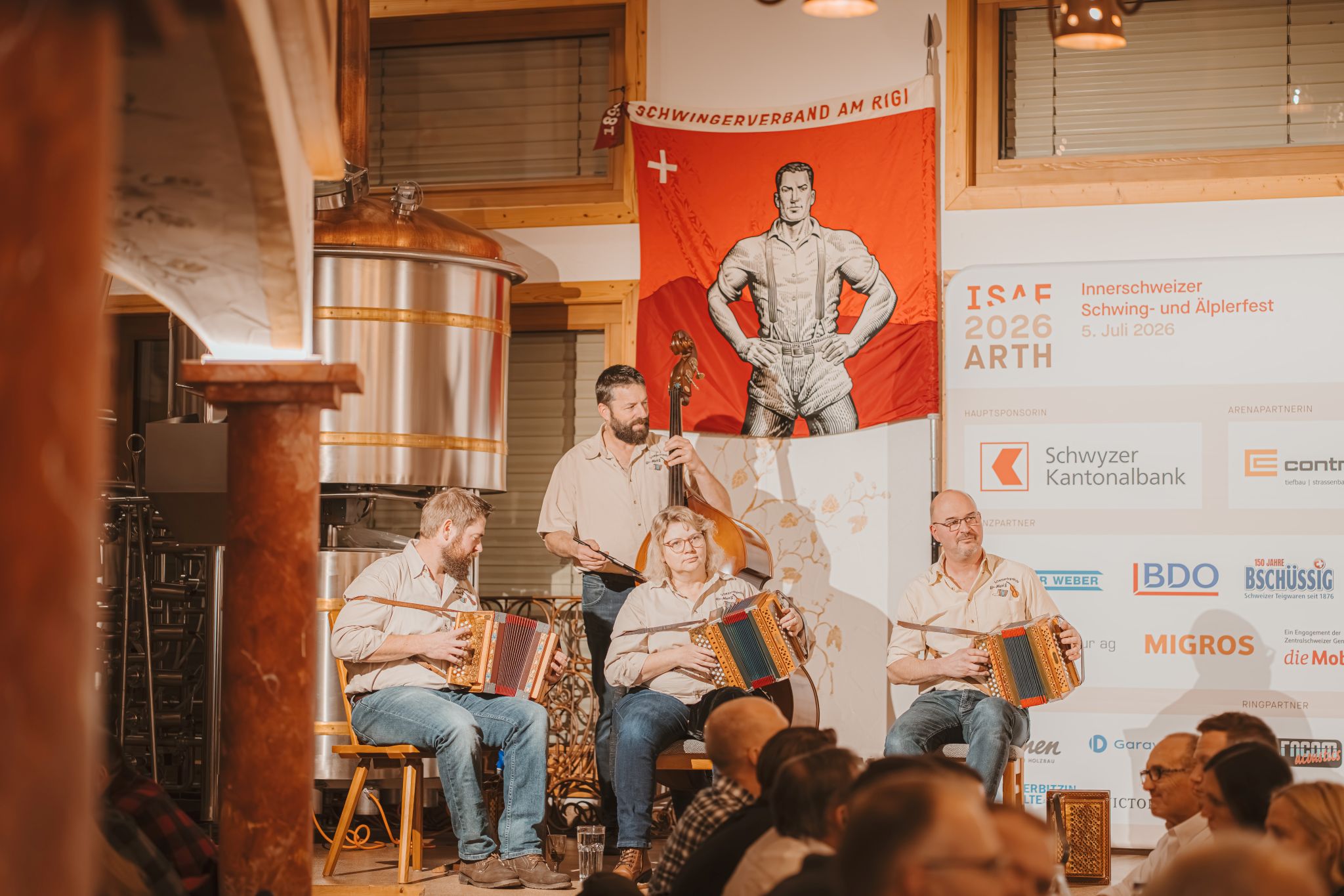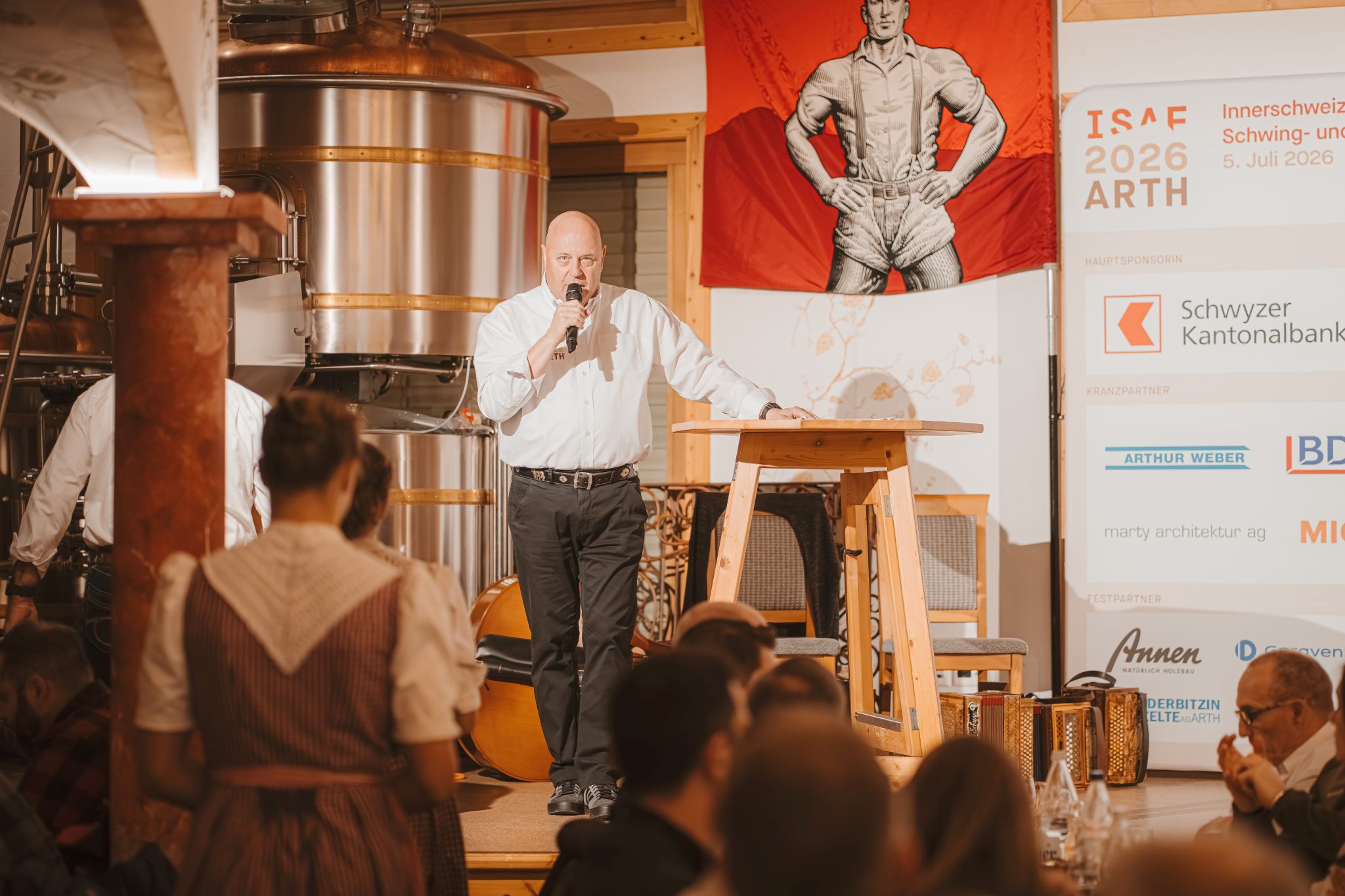 Im offiziellen Teil in der Horseshoe Braui richteten mehrere Persönlichkeiten ihre Worte an die Anwesenden: Fidel Schorno, OK-Präsident ISAF 2026, Regierungsrat André Rüegsegger sowie Ruedi Beeler, Gemeindepräsident von Arth. OK-Präsident Fidel Schorno bedankte sich in seiner Rede ausdrücklich bei den Sponsoren, ohne die ein Fest dieser Grössenordnung nicht möglich wäre. Ebenso hob er die grosse Bedeutung der Landbesitzer hervor, die mit ihrer Unterstützung die Durchführung des ISAF in Arth überhaupt erst ermöglichen. Auch der Gemeinde Arth sprach er seinen Dank aus: Sie stelle eine hervorragende Infrastruktur zur Verfügung und leiste damit einen entscheidenden Beitrag zum Gelingen des Grossanlasses.